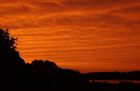 Red in the morning; sunrise; Trapps Pond, Edgartown, Martha’s Vineyard, Massachusetts, USA. June 2012.