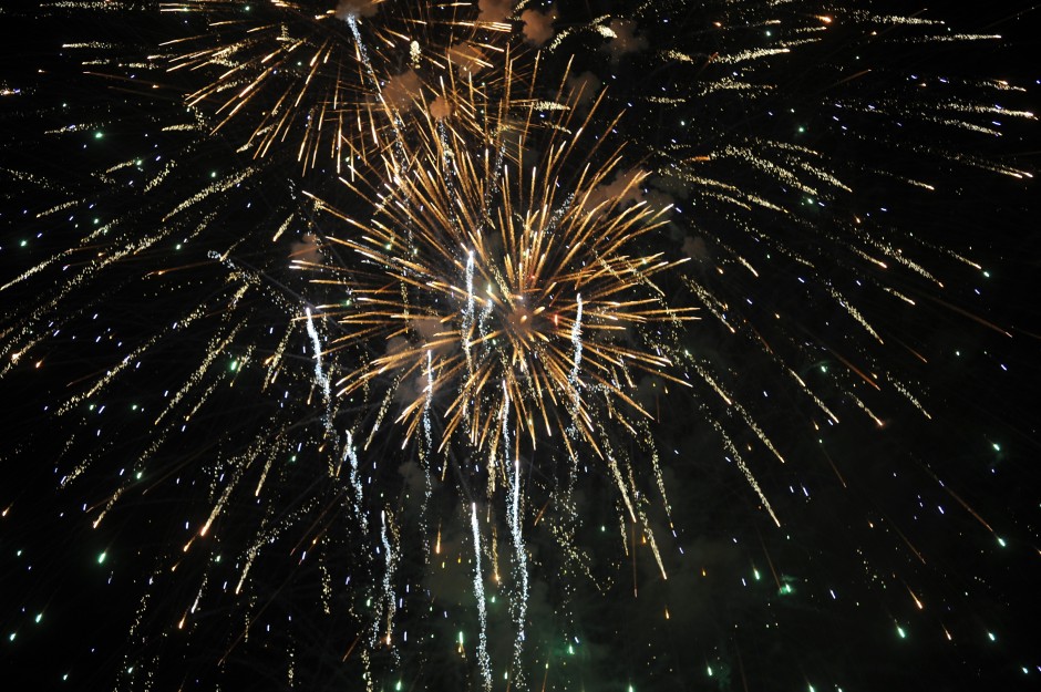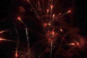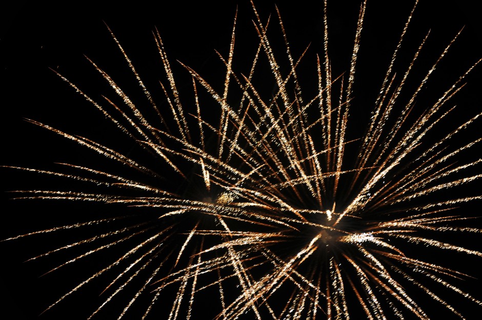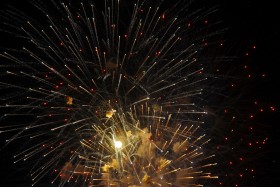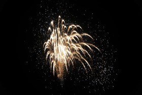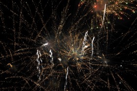 Puffs of gold; fireworks; Ocean Park; Oak Bluffs, Massachusetts, USA. August 2012.