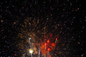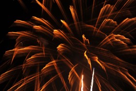 Burnt-orange burst; fireworks; Ocean Park; Oak Bluffs, Massachusetts, USA. August 2012.