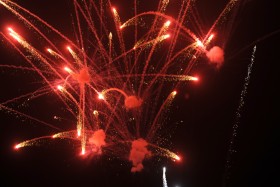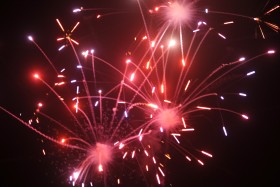 Red sky in the night; fireworks; Ocean Park; Oak Bluffs, Massachusetts, USA. August 2012.