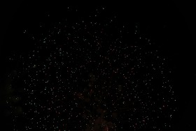 Candles in flight; fireworks; Ocean Park; Oak Bluffs, Massachusetts, USA. August 2012.