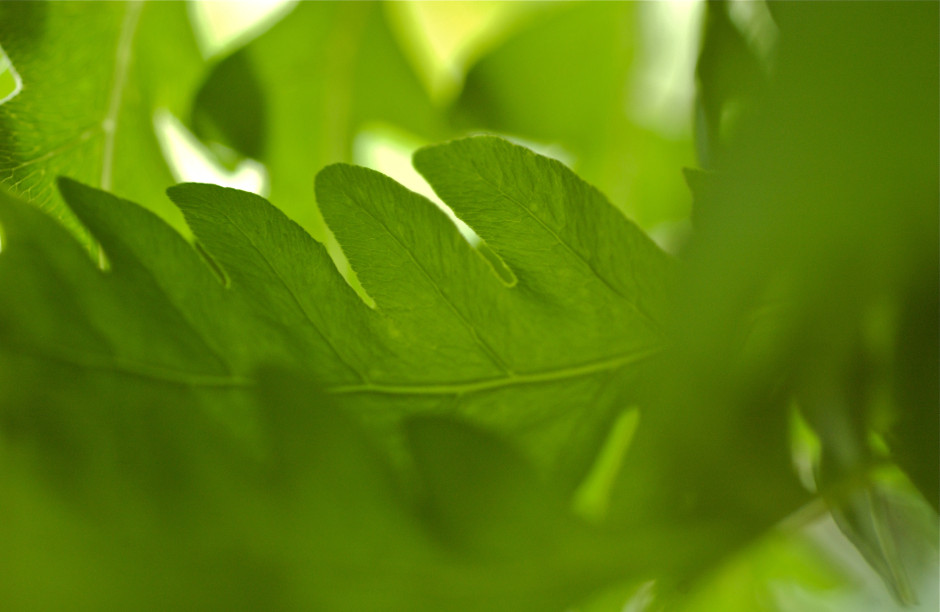 Green on green; fern frond from underneath; Barnhouse, Edgartown, Martha’s Vineyard, Massachusetts, USA. August 2012.