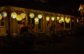 Upstairs cottage porch; Grand Illumination; Martha’s Vineyard Campground Association; Oak Bluffs, Massachusetts, USA. August 2012.