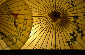 Backlit parasols; Grand Illumination; Martha’s Vineyard Campground Association; Oak Bluffs, Massachusetts, USA. August 2012.