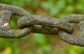 Links, lock; Marine Hospital Cemetery; Seaman’s Friend Society Cemetery; Vineyard Haven, Martha’s Vineyard, Massachusetts, USA. August 2012