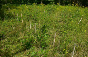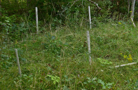 Some stakes still standing; Marine Hospital Cemetery; Seaman’s Friend Society Cemetery; Vineyard Haven, Martha’s Vineyard, Massachusetts, USA. August 2012