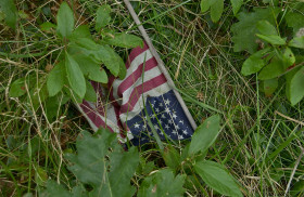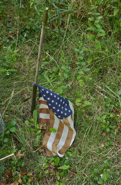Tattered, worn; Marine Hospital Cemetery; Seaman’s Friend Society Cemetery; Vineyard Haven, Martha’s Vineyard, Massachusetts, USA. August 2012