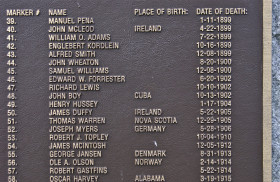 Grave numbers, names; Marine Hospital Cemetery; Seaman’s Friend Society Cemetery; Vineyard Haven, Martha’s Vineyard, Massachusetts, USA. August 2012