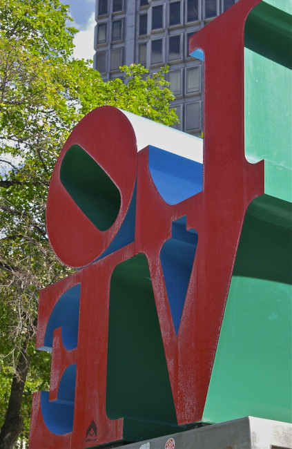 Unusual angle; LOVE sculpture; Center City Philadelphia, Pennsylvania, USA. September 2012.