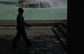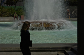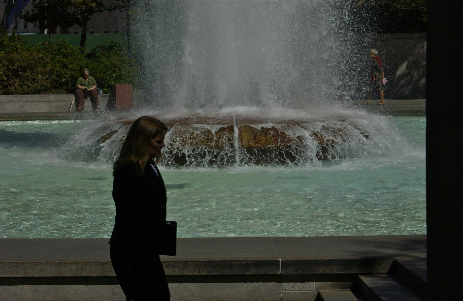 Coming, going, staying put; LOVE Park fountain; Center City; Philadelphia, Pennsylvania, USA. September 2012.