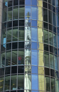 Red shirt, reflection; City Hall; Philadelphia, Pennsylvania, USA