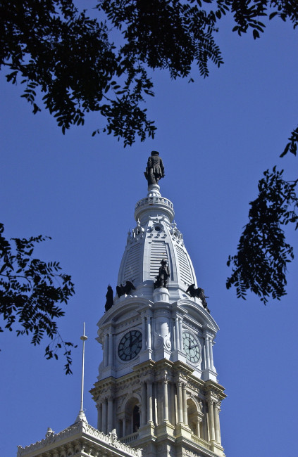 City Hall under a cloudless sky; Center City Philadelphia, Pennsylvania, USA. September, 2012.