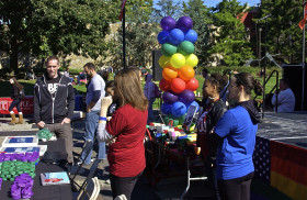 Balloons; Bell Tower; AIDS Awareness; Temple University; Philadelphia, Pennsylvania, USA. October 2012.
