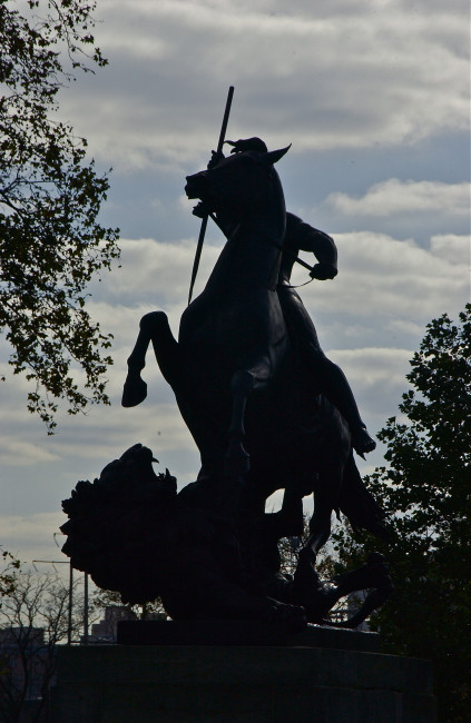 Hunter, horse, lion; Museum of Art; Philadelphia, Pennsylvania, USA. November 2012.