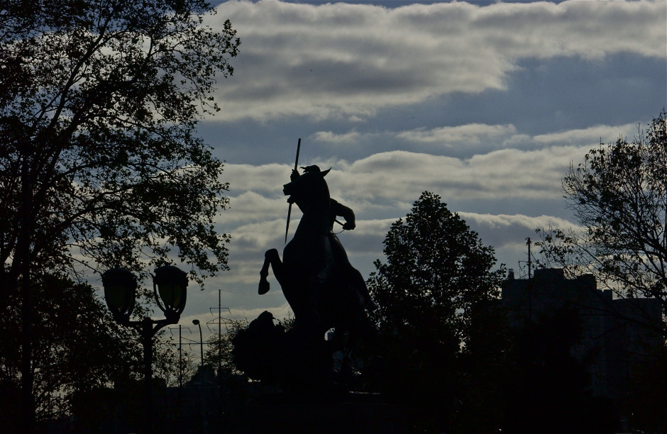 Lone rider; Museum of Art; Philadelphia, Pennsylvania, USA. November 2012.