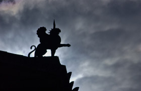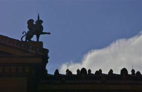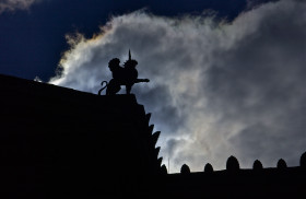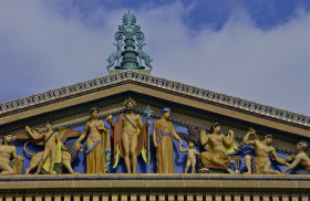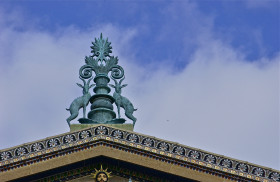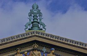 Ornate roof detail; Museum of Art; Philadelphia, Pennsylvania, USA. Npovember 2012.
