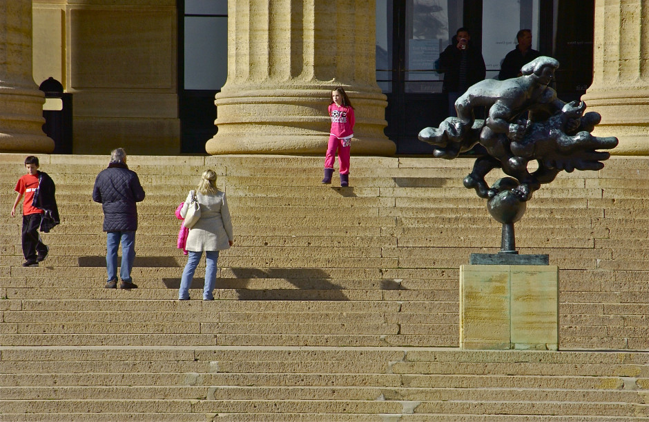 Family; entrance; Museum of Art; Philadelphia, Pennsylvania, USA. November 2012.
