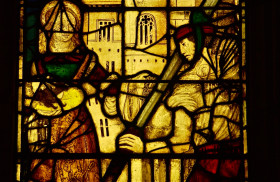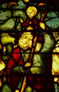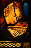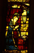 Woman, man; composite replacement glass; 15th, 16th century French Gothic chapel; Philadelphia Museum of Art, Philadelphia, Pennsylvania, USA. December 2012.