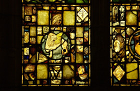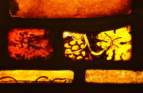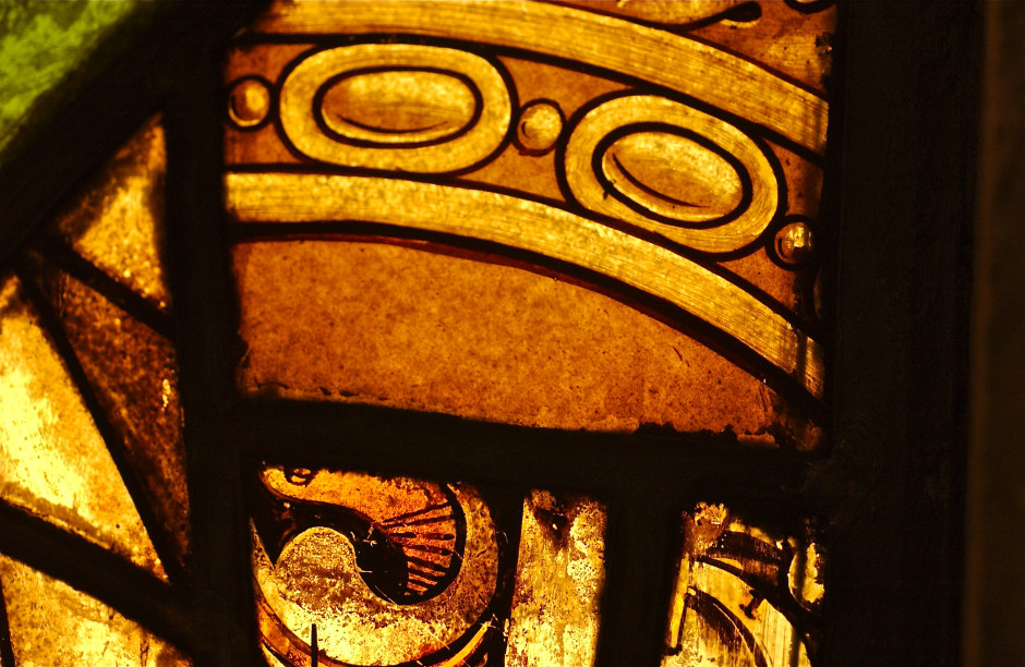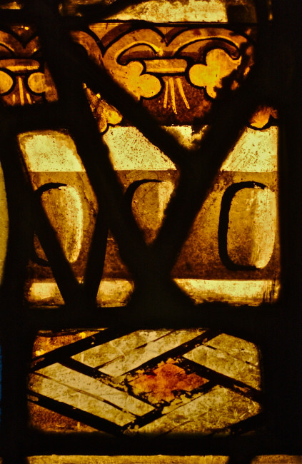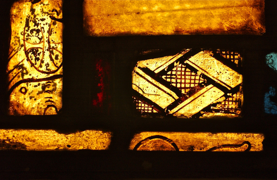Fragments; composite replacement glass; 15th, 16th century French Gothic chapel; Philadelphia Museum of Art, Philadelphia, Pennsylvania, USA. December 2012.
