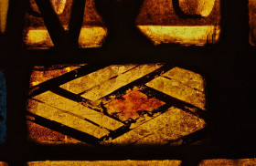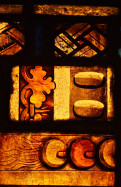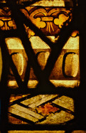 Composite detail; replacement glass; 15th, 16th century French Gothic chapel; Philadelphia Museum of Art, Philadelphia, Pennsylvania, USA. December 2012.