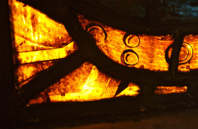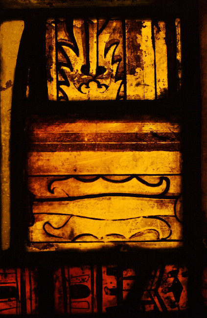 Dark sweep; composite replacement glass; 15th, 16th century French Gothic chapel; Philadelphia Museum of Art, Philadelphia, Pennsylvania, USA. December 2012.