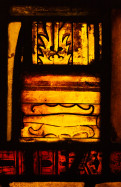 Top of an arch; composite replacement glass; 15th, 16th century French Gothic chapel; Philadelphia Museum of Art, Philadelphia, Pennsylvania, USA. December 2012.