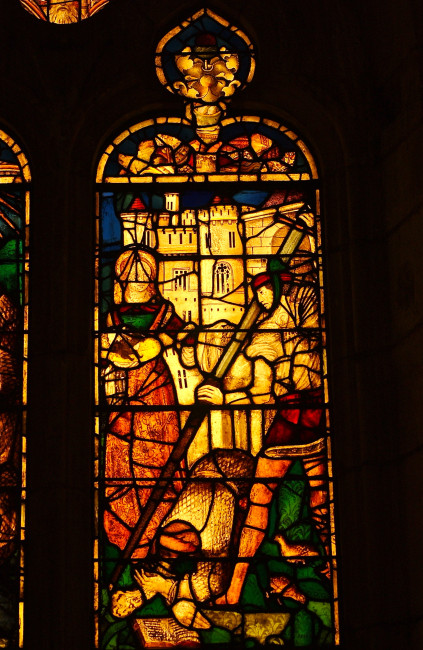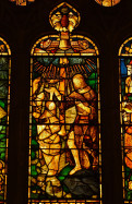 Center panel; composite replacement glass; 15th, 16th century French Gothic chapel; Philadelphia Museum of Art, Philadelphia, Pennsylvania, USA. December 2012.