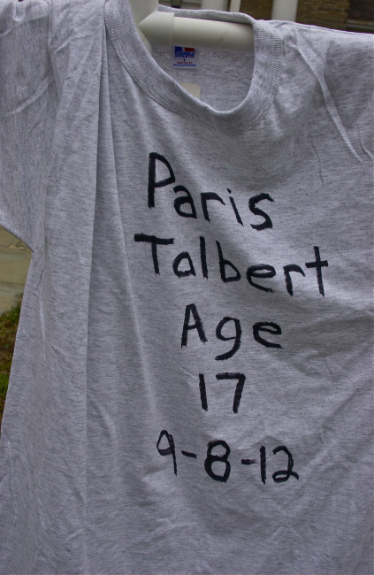 Paris Talbert, age 17; protesting gun violence; 331 deaths in 2012; Presbyterian Church of Chestnut Hill; Philadelphia, Pennsylvania, USA. January 2013.