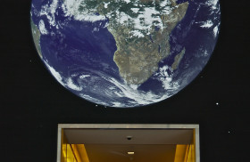 World view; lobby presentation; Comcast Center; Philadelphia, Pennsylvania, USA. September 2013.