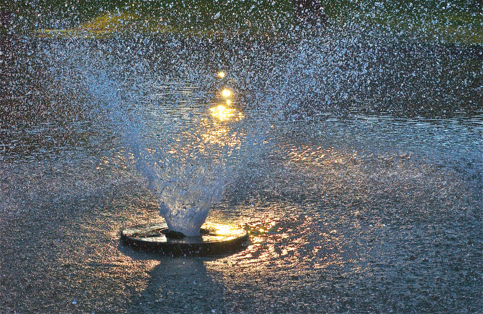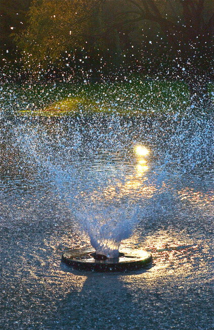 Turbulence at day’s end; fountain; Robinson Park; Wyncote, Pennsylvania, USA. October 2013.