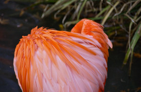 Preened; flamingo; Philadelphia Zoo; Philadelphia, Pennsylvania, USA. November 2013.