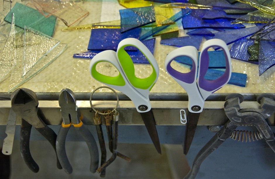 Some of what it takes; glass artist’s studio; Churn Creek, Worton, Kent County, Maryland, USA. November 2013.