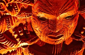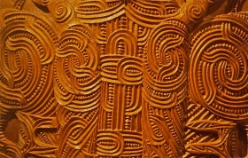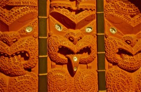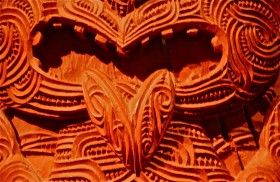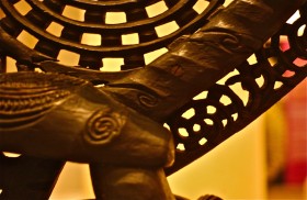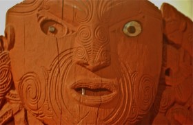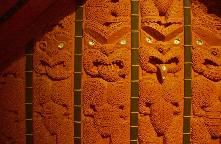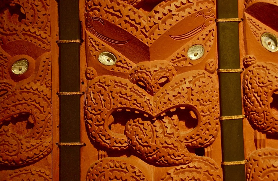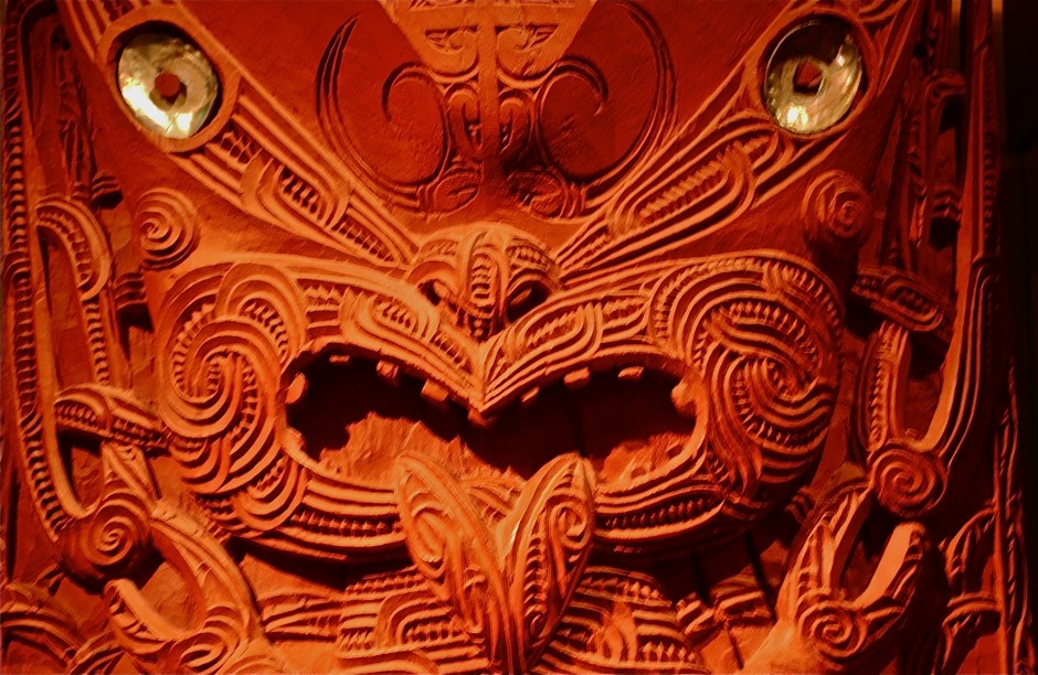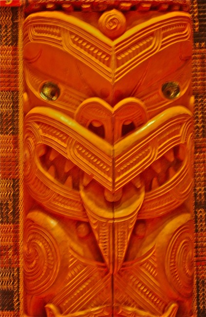 Maori wood sculpture detail; Auckland, New Zealand. January 2014.
