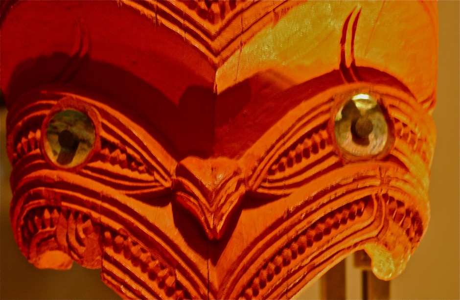 Fearsome; Mori art details; Auckland Museum Institute; Auckland, North Island, New Zealand. January 2014.