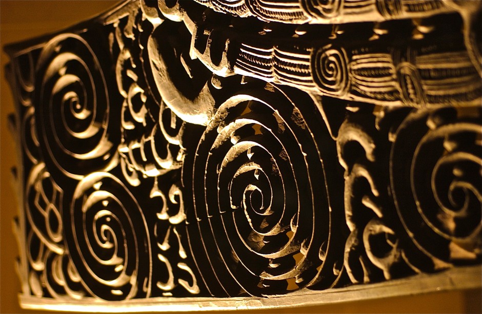 Intricate patterns; Maori canoe detail; Auckland Museum Institute; Auckland, North Island, New Zealand. January 2014.