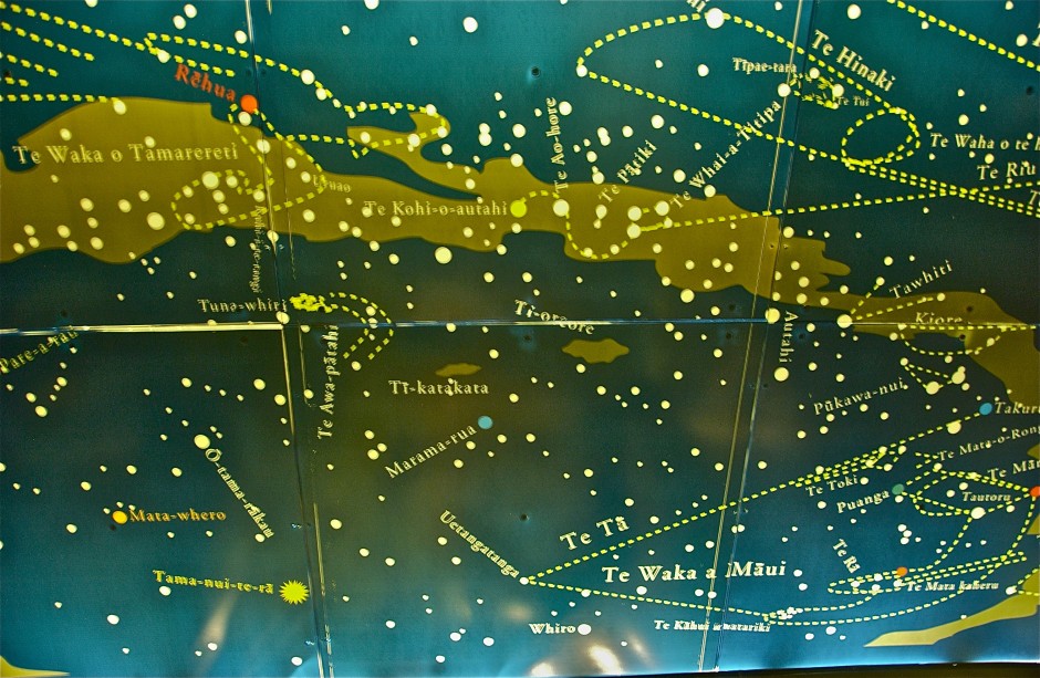 Voyage map of early Maori ventures; Auckland Museum Institute; Auckland, North Island, New Zealand. January 2014.