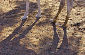 Stance, shadow; Camels Australia; Stuarts Well, Northern Territory, Australia. January 2014.