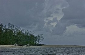 On the margin as storm clouds gather; Coopers Creek, Cape Tribulation wilderness; Queensland, Australia. January 2014.