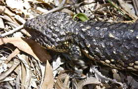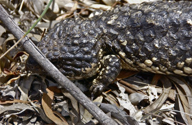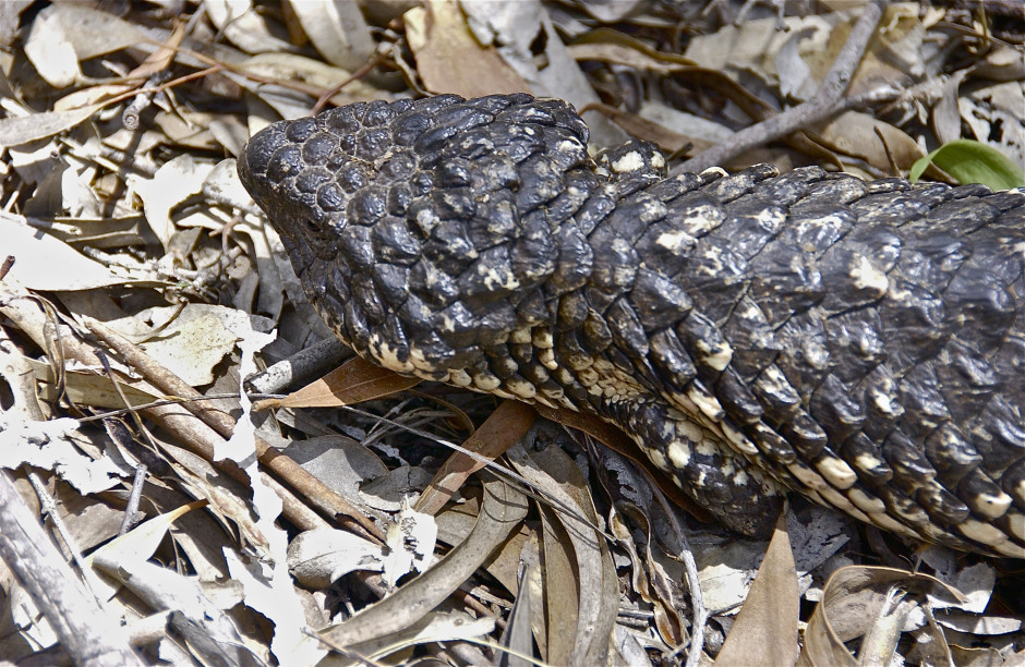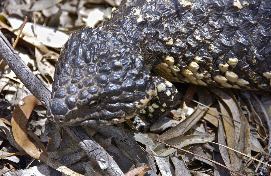 A closer view; Shingleback Skink; Western Plains; Victoria; Australia. January 2014.