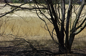 Silhouetted tree detail; Western Plains; Victoria; Australia. January 2014.