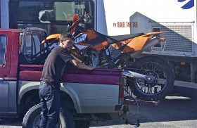 Off-road rider; Church of the Good Shepherd; Lake Tekapo, Canterbury District, South Island, New Zealand. January 2014.
