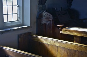 Now-vacant pews; Church of the Good Shepherd; Lake Tekapo, Canterbury District, South Island, New Zealand. January 2014.