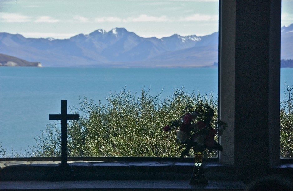 From inside the sanctuary; Church of the Good Shepherd; Lake Tekapo, Canterbury District, South Island, New Zealand. January 2014.