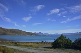 Under wispy clouds; Lake Tekapo, Canterbury District, South Island, New Zealand. January 2014.