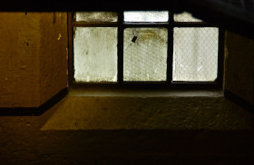 Reinforced glass panels; Old Melbourne Gaol; Melbourne, Australia. January 2014.