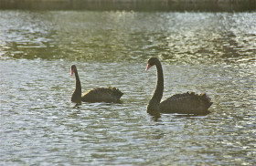 A watery arabesque; black swan; Torrens River; Adelaide, South Australia, Australia. January 2014.