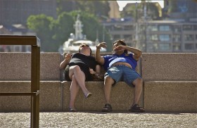 Engaged in conversation; opera house; Sydney, New South Wales, Australia. January 2014.