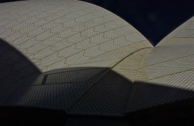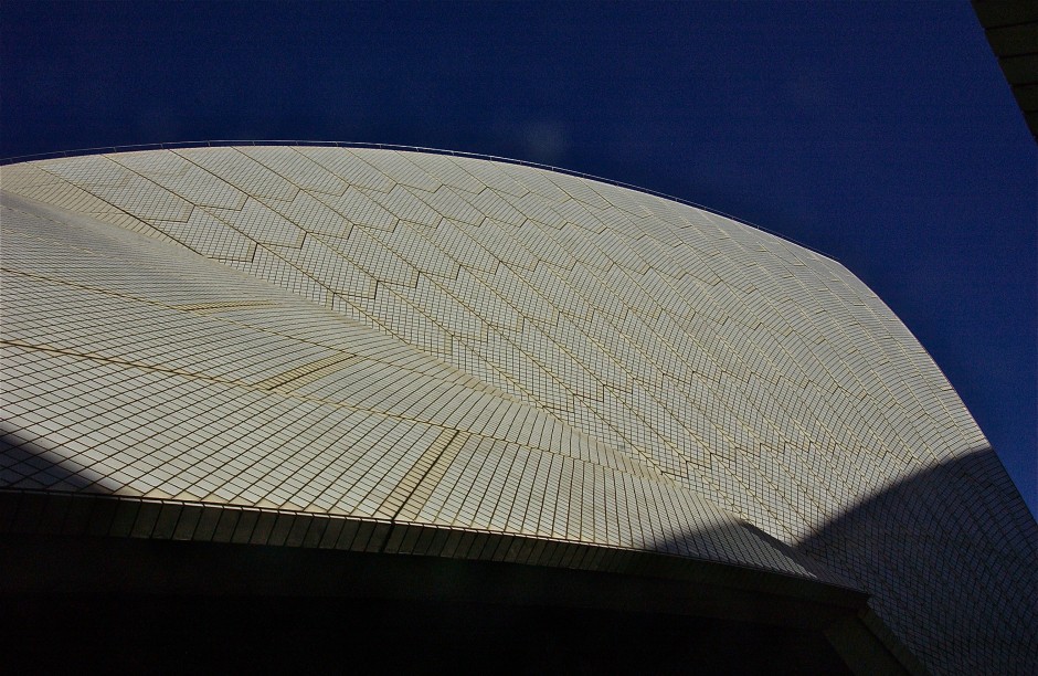 Sunlight, shadow; opera house; Sydney, New South Wales, Australia. January 2014.