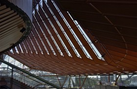 Under cover, in the open; opera house; Sydney, New South Wales, Australia. January 2014.