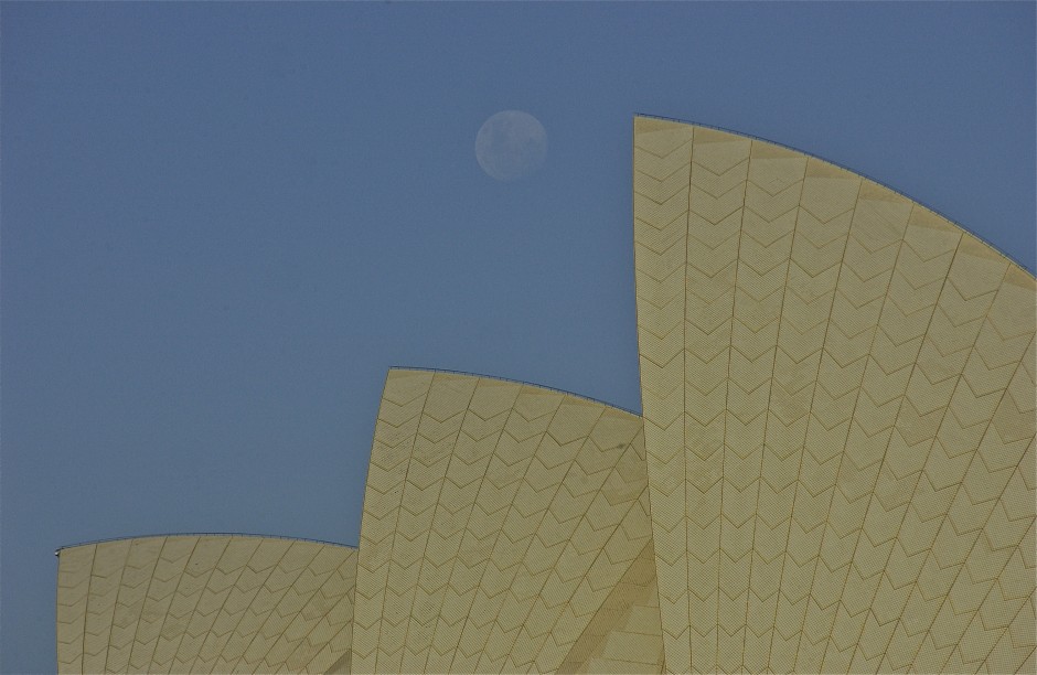 Under the moon; opera house; Sydney, New South Wales, Australia. January 2014.